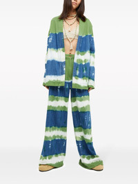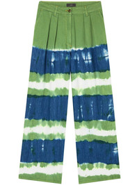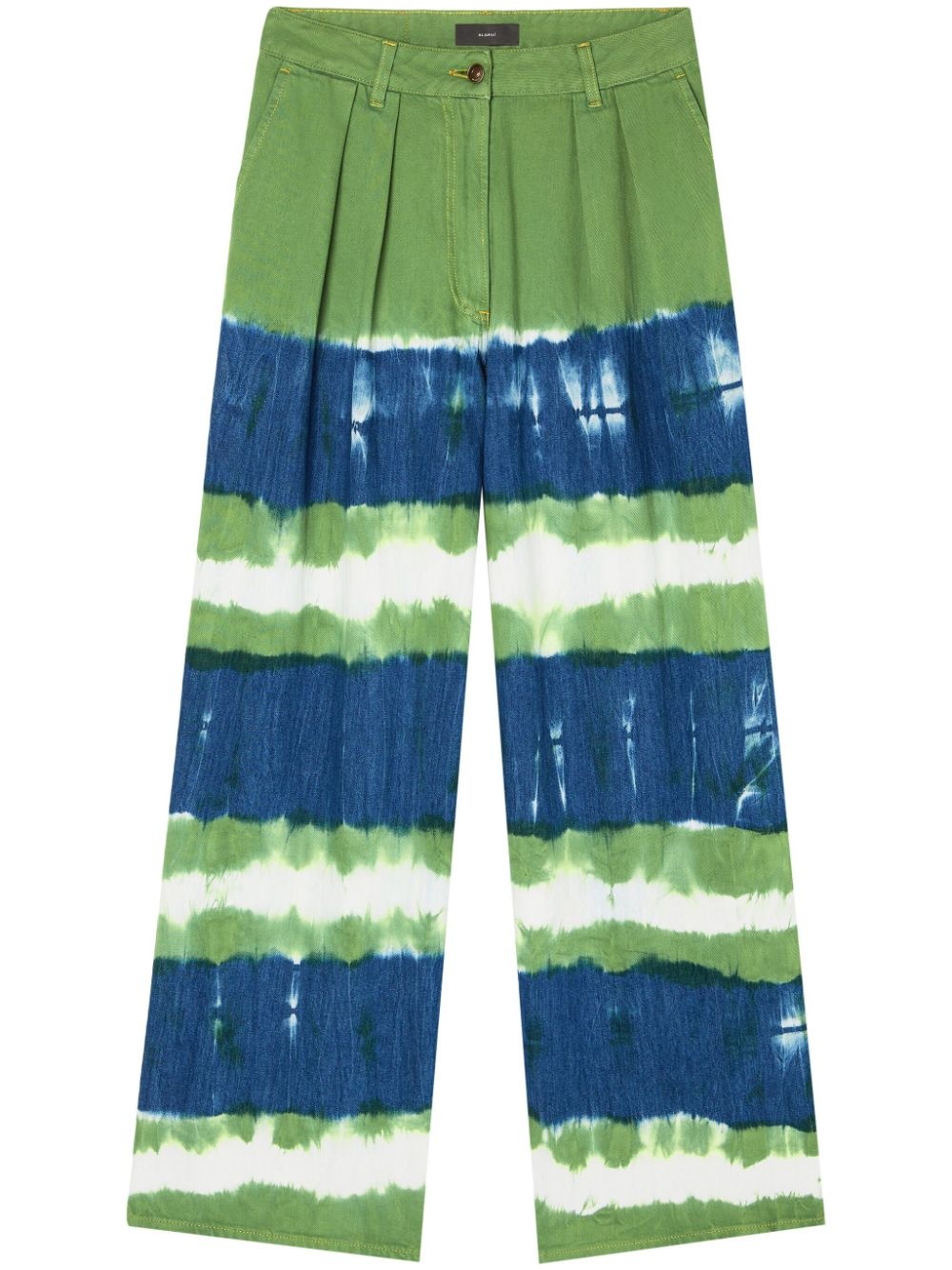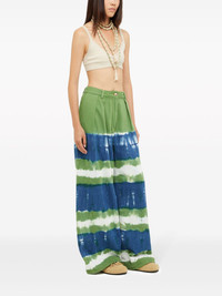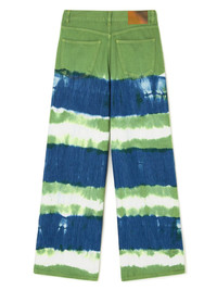 Magic Journey tie-dye jeans Highlights - Sage green/indigo blue/chalk white - Cotton - Denim - Tie-dye pattern - Horizontal stripe pattern - Pleat detailing - Applique logo - High-waisted - Concealed fly and button fastening - Belt loops - Wide leg - Two side slit pockets - Two rear patch pockets Made in Italy Composition Lining: Cotton 100% Outer: Cotton 100% Washing instructions Read Manufacturer Guidelines