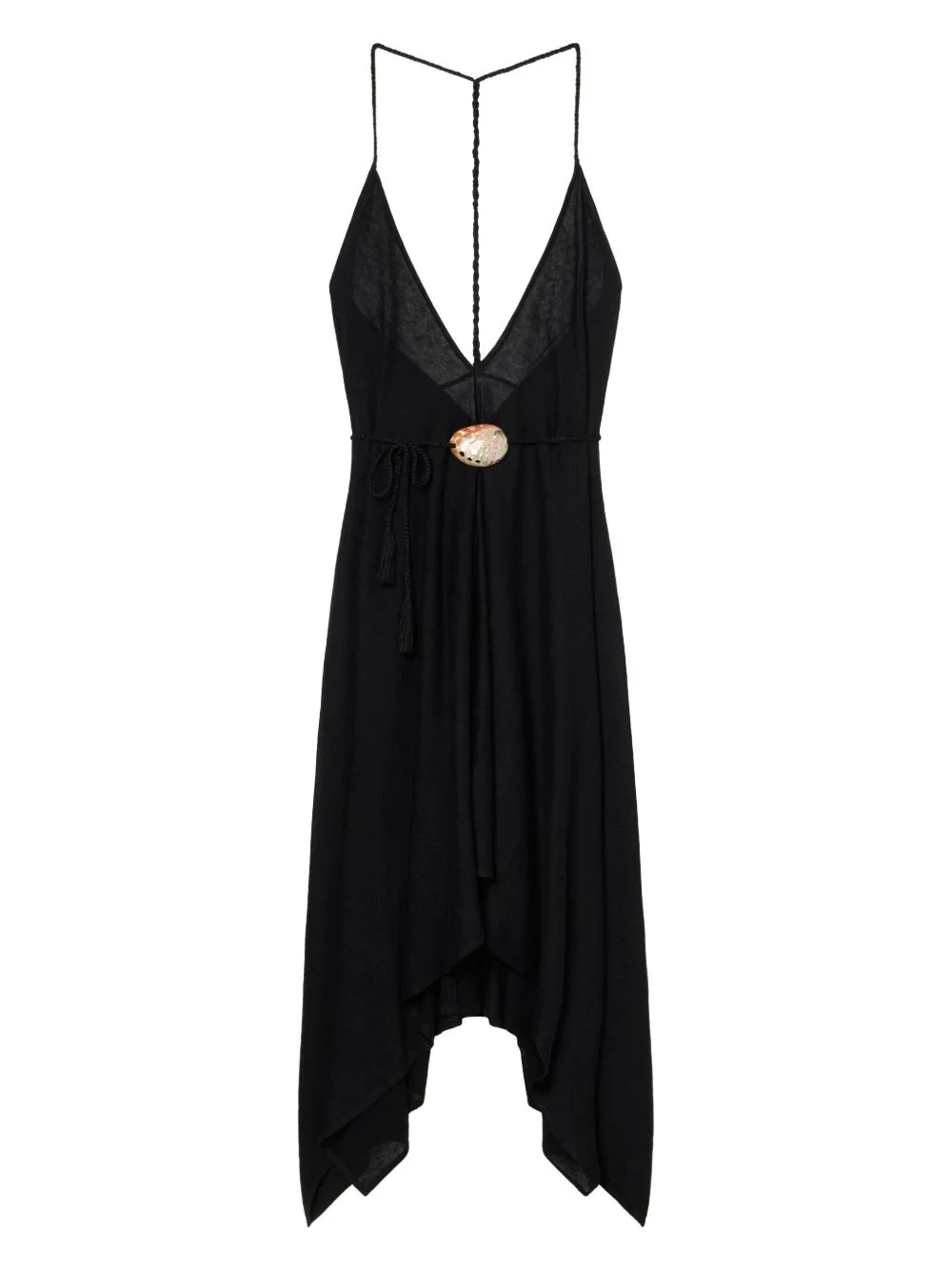 Mermaid Inside halterneck embellished maxi dress Highlights - Black - Halterneck - Embellished detail - Braided straps - Tassel detail - Asymmetric hem Made in Italy Composition Linen/Flax 100%