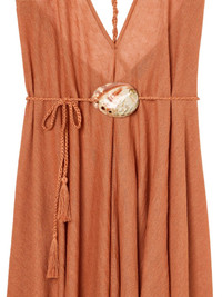 Mermaid Inside shell-detail belted maxi dress Highlights - Brown - Braided straps - V-neck - Shell detail - Tassel detail - Asymmetric hem Made in Italy Composition Linen/Flax 100% Washing instructions Read Manufacturer Guidelines
