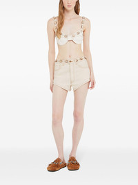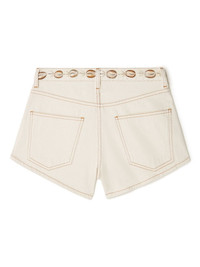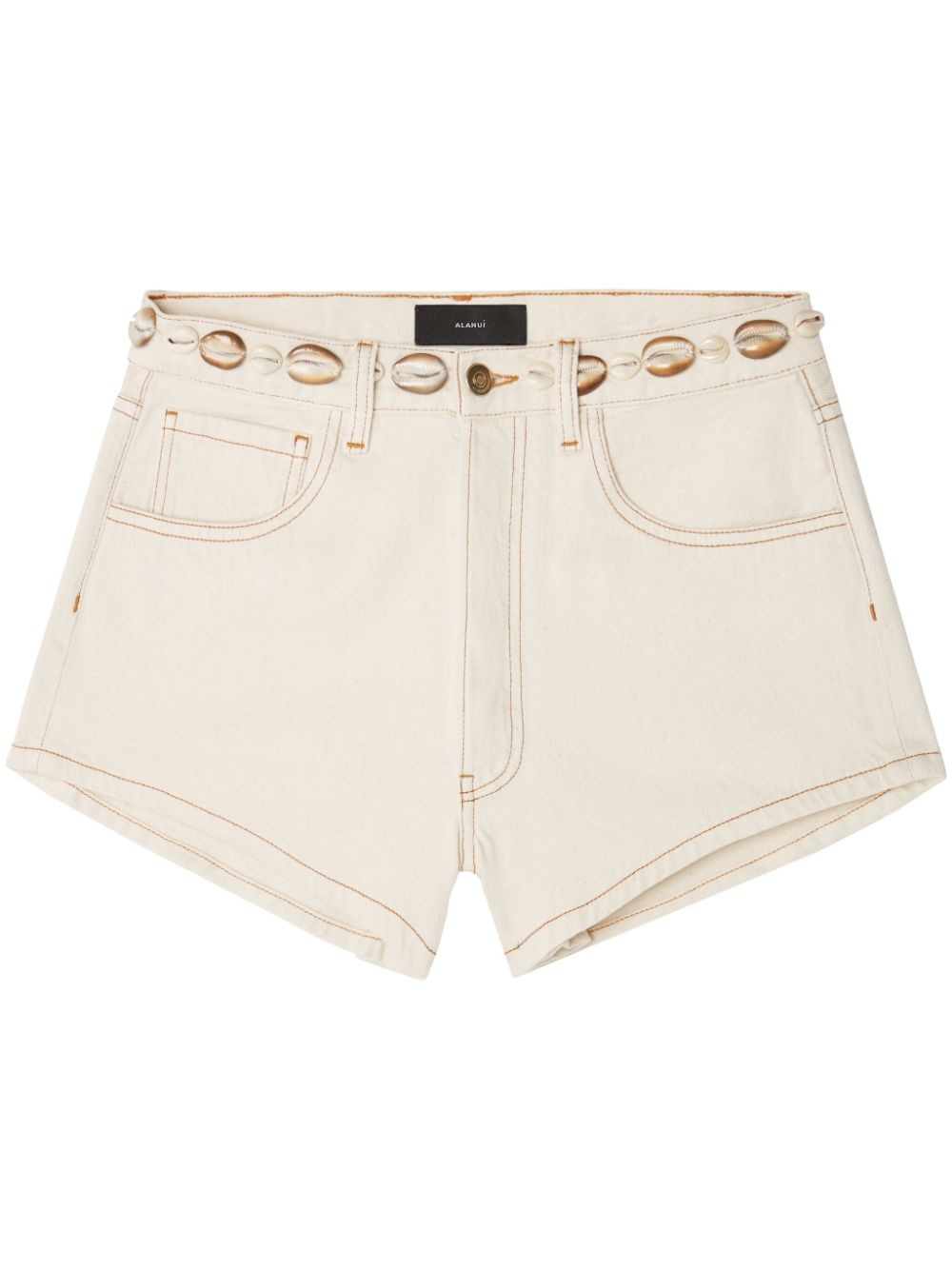 Ocean Dream denim shorts Highlights - White - Concealed fly and button fastening - Belt loops - Classic five pockets - Cowrie shell embellishment Made in Italy Composition Cotton 100%, Shell 100%
