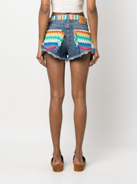 Over The Rainbow denim shorts Highlights - Indigo blue - Multicolour - Cotton - Crochet knit - Logo patch to the rear - Ripped detailing - Belt loops - Button fly fastening - Classic five pockets - Fringed edge Made in Italy Composition Cotton 100%