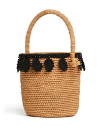 paisley-applique raffia basket bag Highlights - Beige/black - Raffia - Single top handle - Paisley motif - Applique detailing - Open top - Main compartment Imported Composition Outer: Cotton 100%, Raffia 100%