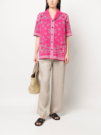 paisley-print short-sleeved shirt magenta/jet black cotton paisley print spread collar front button fastening short sleeves Made in Italy Composition Cotton 100% SIZE & FIT Model measurements Height 5 ft 10 in(1.78 m) Bust/Chest 31.49 in(80 cm) Hips 36.22 in(92 cm) Waist 25.59 in(65 cm) FittingInformation This piece fits true to size. We recommend you get your regular size Cut for a loose fit Made with a mid-weight fabric Washing instructions Dry Clean Only