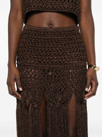 Ray Of Light skirt Highlights - Coffee brown - Elasticated waistband - Fringe detailing - Lurex detailing Made in Italy Composition Viscose 65%, Metallized Polyester 35% SIZE & FIT Model measurements Height 5 ft 10 in(1.77 m) Bust/Chest 32.28 in(82 cm) Hips 35.03 in(89 cm) Waist 25.19 in(64 cm) FittingInformation This maxi-length skirt is intended to be worn just below the waist The elasticated waist allows for a comfortable fit Made with a midweight knit, this piece offers some stretch