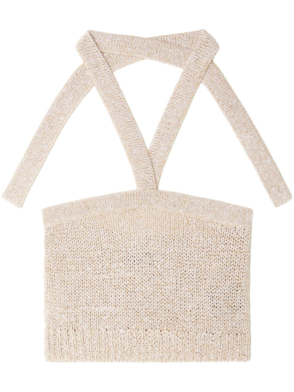 Shady Beach top Highlights - Almond beige - Halterneck tie fastening - Sleeveless - Cropped - Metallic threading Made in Italy Composition Polyester 60%, Cotton 40%