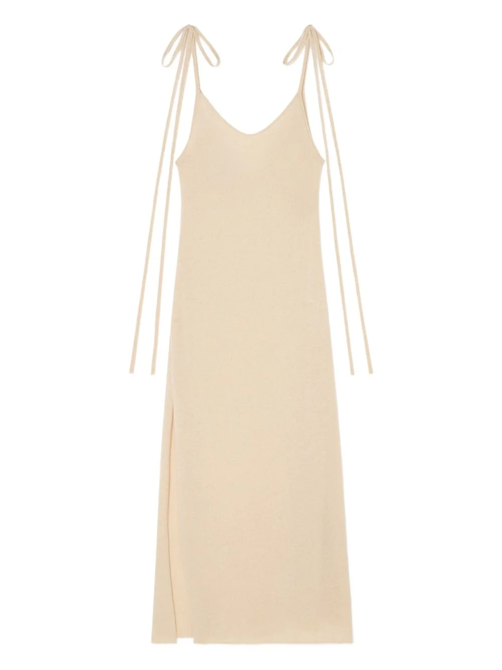 tie-strap finest maxi dress Highlights - White - Tie straps - V-neck - Side slit - Sleeveless Made in Italy Composition Cashmere 64%, Cotton 36% Washing instructions Read Manufacturer Guidelines