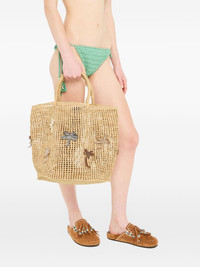 Where The Waves Begings palm-tree raffia tote bag Highlights - Natural beige - Raffia construction - Top handles - Palm tree embellishment Made in Italy Composition Outer: Raffia 100%