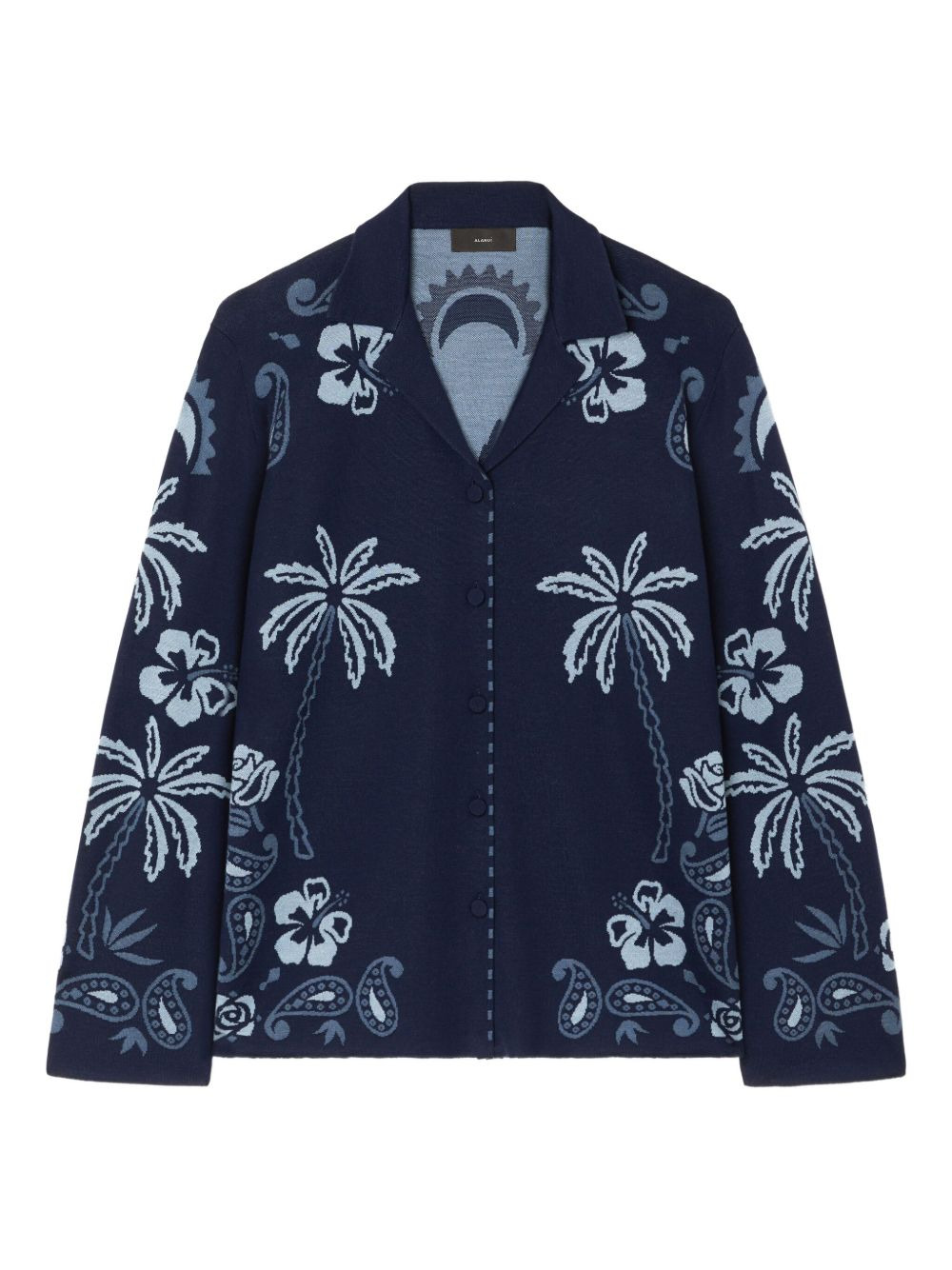 Wild Wonder jacquard shirt Highlights - Midnight blue - Palm-tree pattern - Paisley pattern - Button fastening - Notched collar - Long sleeves Made in Italy Composition Virgin Wool 56%, Silk 44% Washing instructions Read Manufacturer Guidelines