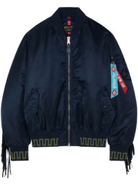 x Alpha Industries bomber jacket Highlights - Navy blue - Front zip fastening - Sleeve zip pocket - Two side flap pockets Imported Composition Polyamide 100% Washing instructions Read Manufacturer Guidelines