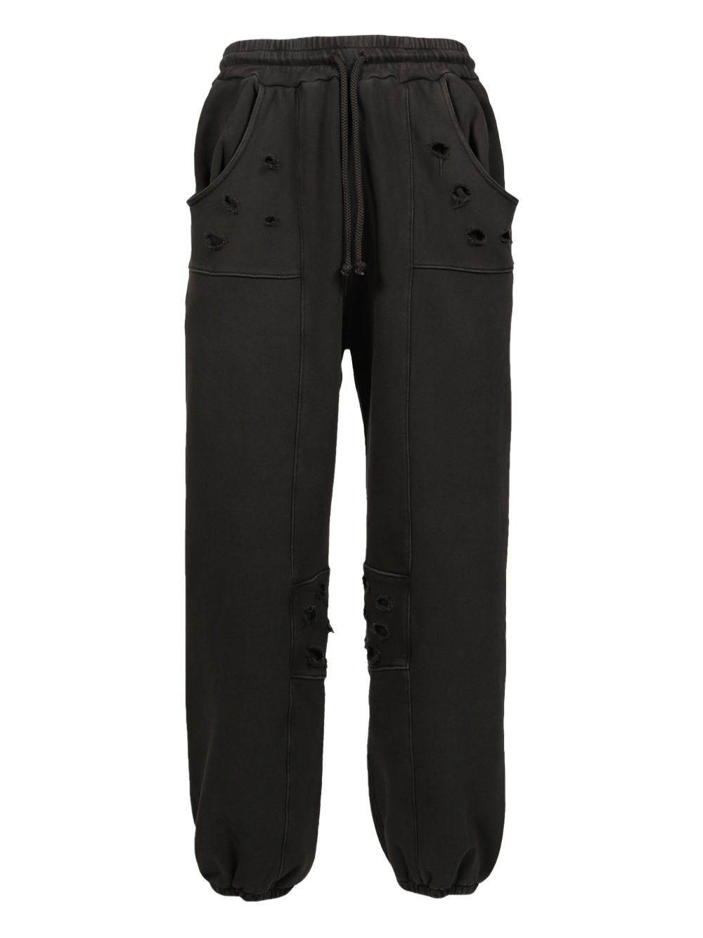 distressed trousers Highlights - Black - Cuffed hems - Drawstring waistband Imported Composition Fabric 100% Washing instructions Read Manufacturer Guidelines