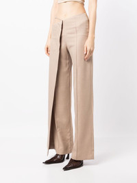 asymmetric wide-leg trousers beige cut-out detailing high waist concealed front fastening wide leg Imported Composition Viscose 70%, Polyester 30% SIZE & FIT Model measurements Height 5 ft 11 in(1.8 m) Bust/Chest 28.34 in(72 cm) Hips 35.43 in(90 cm) Waist 23.62 in(60 cm) FittingInformation This piece fits true to size. We recommend you get your regular size Designed to be fitted at the waist, loose over the leg Made with a mid-weight non-stretch fabric