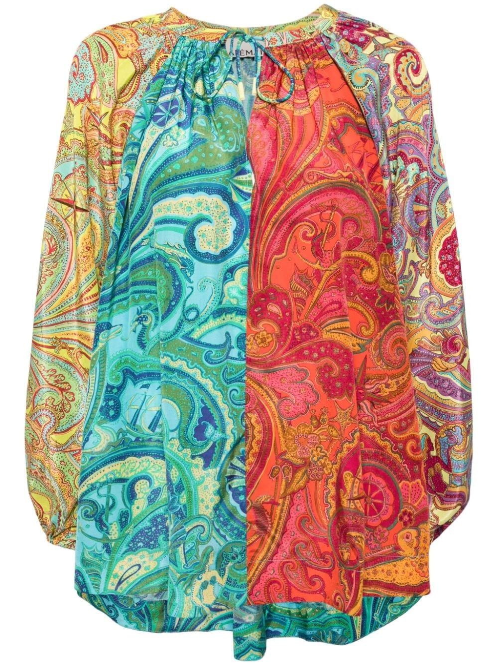 Ceto Spliced blouse Highlights - Multicolour - Silk-cotton blend - Textured finish - Front tie fastening - Paisley print - Round neck - Keyhole neck - Long puff sleeves - Elasticated cuffs - Curved hem Made in Italy Composition Silk 52%, Cotton 48% SIZE & FIT Model measurements Height 5 ft 9 in(1.76 m) Bust/Chest 31.1 in(79 cm) Hips 35.03 in(89 cm) Waist 24.4 in(62 cm) FittingInformation Designed for a relaxed fit, this piece allows for comfort and movement when worn Made from a lightweight non-stretch fabric