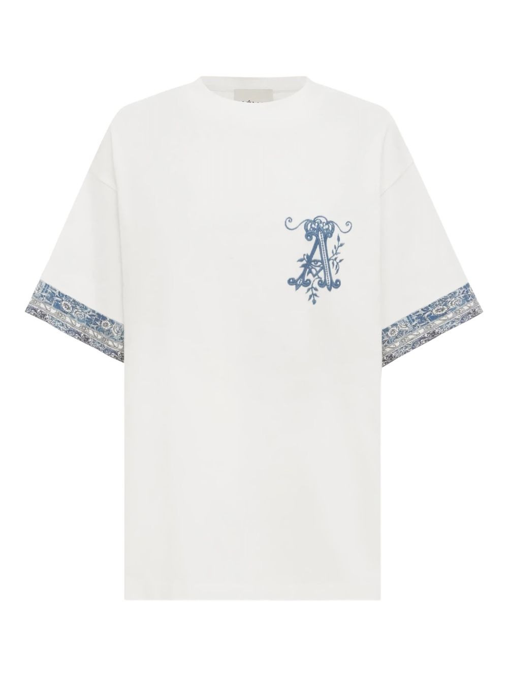 embroidered-cuff t-shirt Highlights - White - Embroidered monogram - Short sleeves - Floral detail - Patterned cuffs - Crew neck Imported Composition Organic Cotton 100% Washing instructions Read Manufacturer Guidelines