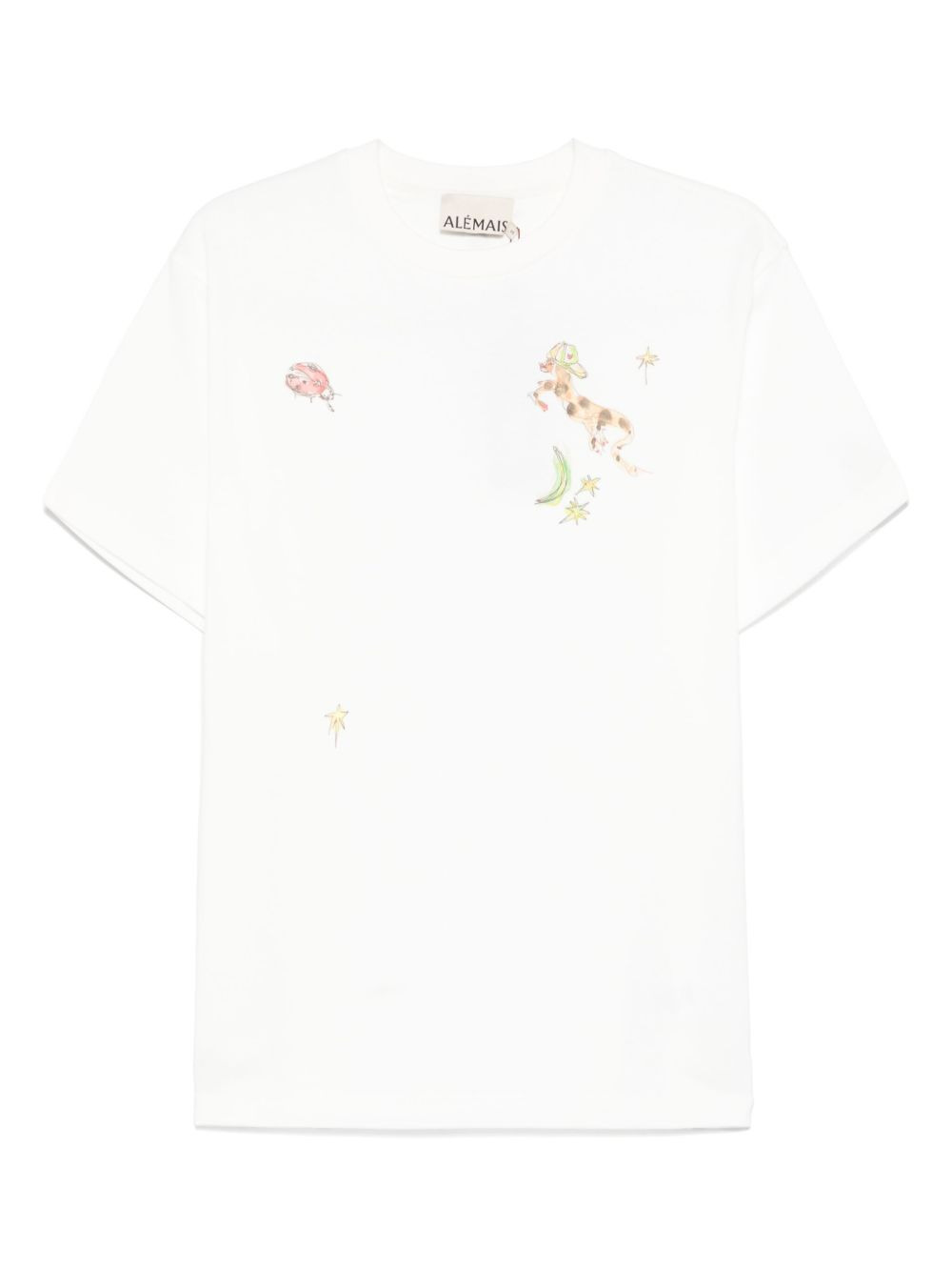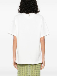 graphic-print T-shirt Highlights - White - Crew neck - Short sleeves - Straight hem Imported Composition Organic Cotton 100% SIZE & FIT Model measurements Height 5 ft 11 in(1.8 m) Bust/Chest 31.49 in(80 cm) Hips 35.82 in(91 cm) Waist 24.8 in(63 cm) FittingInformation Designed to be unstructured, offering a loose fit throughout Made from a midweight non-stretch fabric, this piece offers minimal elasticity when worn Washing instructions Hand Wash