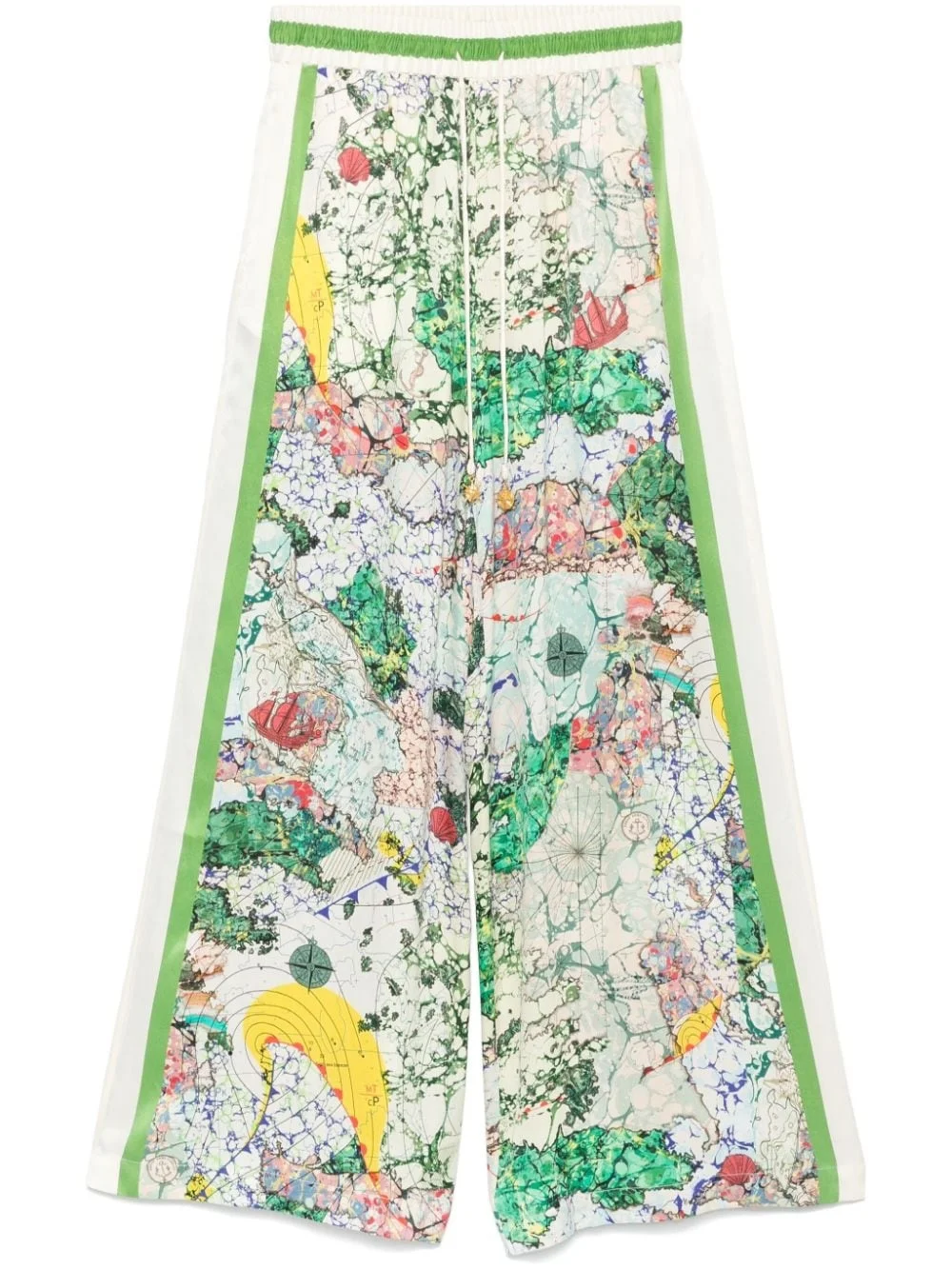 Odyssey trousers Highlights - Multicolour - Silk - Satin weave - Drawstring fastening - Charm detail - Abstract world map print - Elasticated waistband - Two side inset pockets - Wide leg Imported Composition Silk 100% SIZE & FIT Model measurements Height 5 ft 9 in(1.75 m) Bust/Chest 34.64 in(88 cm) Hips 36.61 in(93 cm) Waist 26.37 in(67 cm) FittingInformation Designed with a wide-leg cut, these trousers allow for a close fit at the waist and offer a loose and roomy fit over the leg Adjust this piece’s waistband to your preference using the drawstring Made from a lightweight non-stretch fabric