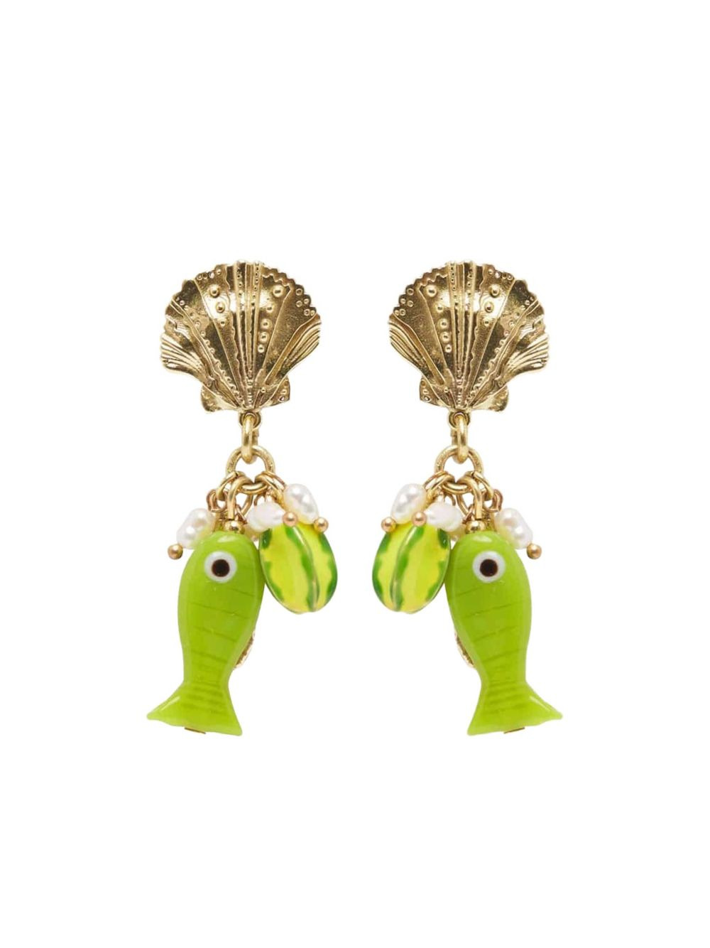 shell fish bijoux earrings Highlights - Gold/green/multi - Shell detail - Fish detail - Bead embellishment - Drop style - For pierced ears - These earrings come as a pair. Imported SIZE & FIT Measurement TOTAL LENGTH 2.04 in(5.2 cm) WIDTH 1.18 in(3 cm) HEIGHT 2.04 in(5.2 cm)