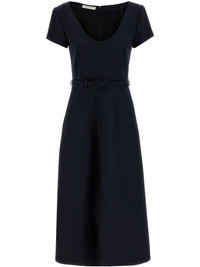 belted midi dress Highlights - Midnight blue - Rear zip fastening - Short sleeves - Scoop neck - Flared Made in Italy Composition Wool 97%, Elastane 3%