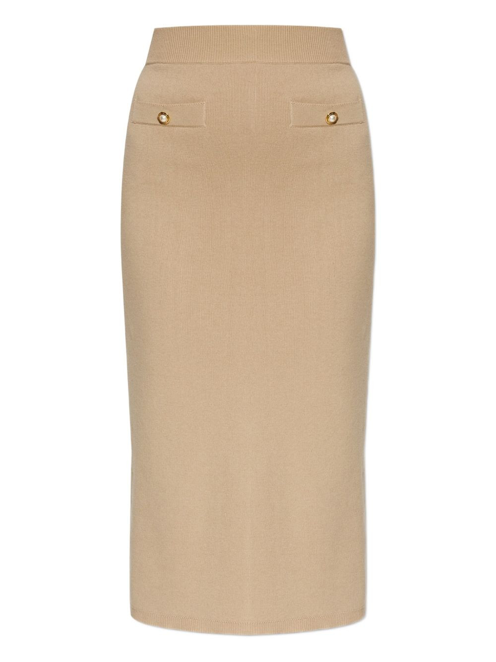 button-detailed knit skirt Highlights - Sand - Ribbed knit - Midi length - High waist - Gold embellishment Made in Italy Composition Cotton 85%, Cashmere 15% Washing instructions Read Manufacturer Guidelines