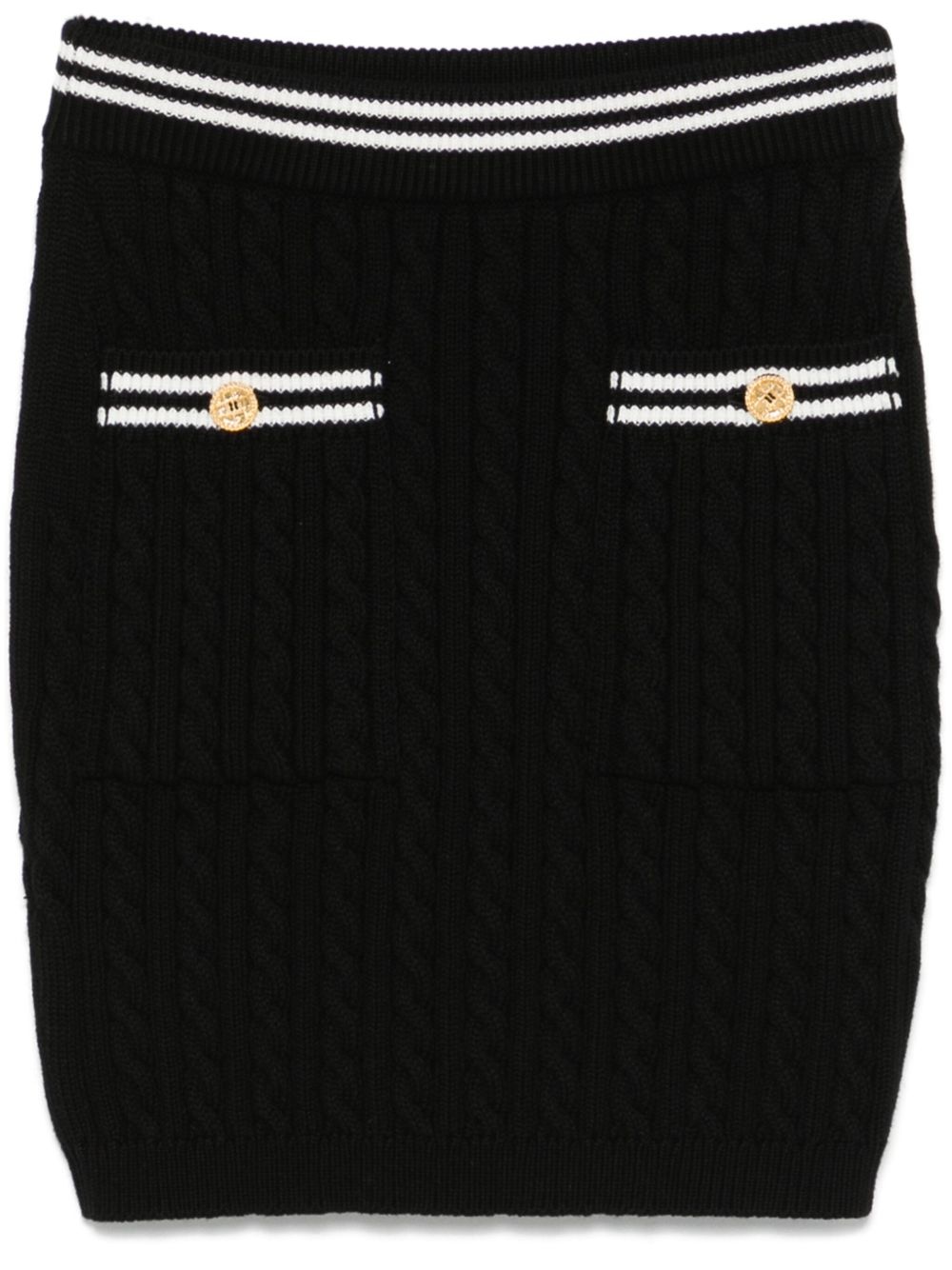 cable-knit mini skirt Highlights - Black - Elasticated waistband - Two front welt pockets - Ribbed hem Made in Italy Composition Cotton 100% SIZE & FIT Model measurements Height 5 ft 10 in(1.79 m) Bust/Chest 31.88 in(81 cm) Hips 35.43 in(90 cm) Waist 23.62 in(60 cm) FittingInformation This mini-length skirt is intended to be worn high on the waist The elasticated waist allows for a comfortable fit Made with a midweight knit, this piece offers some stretch