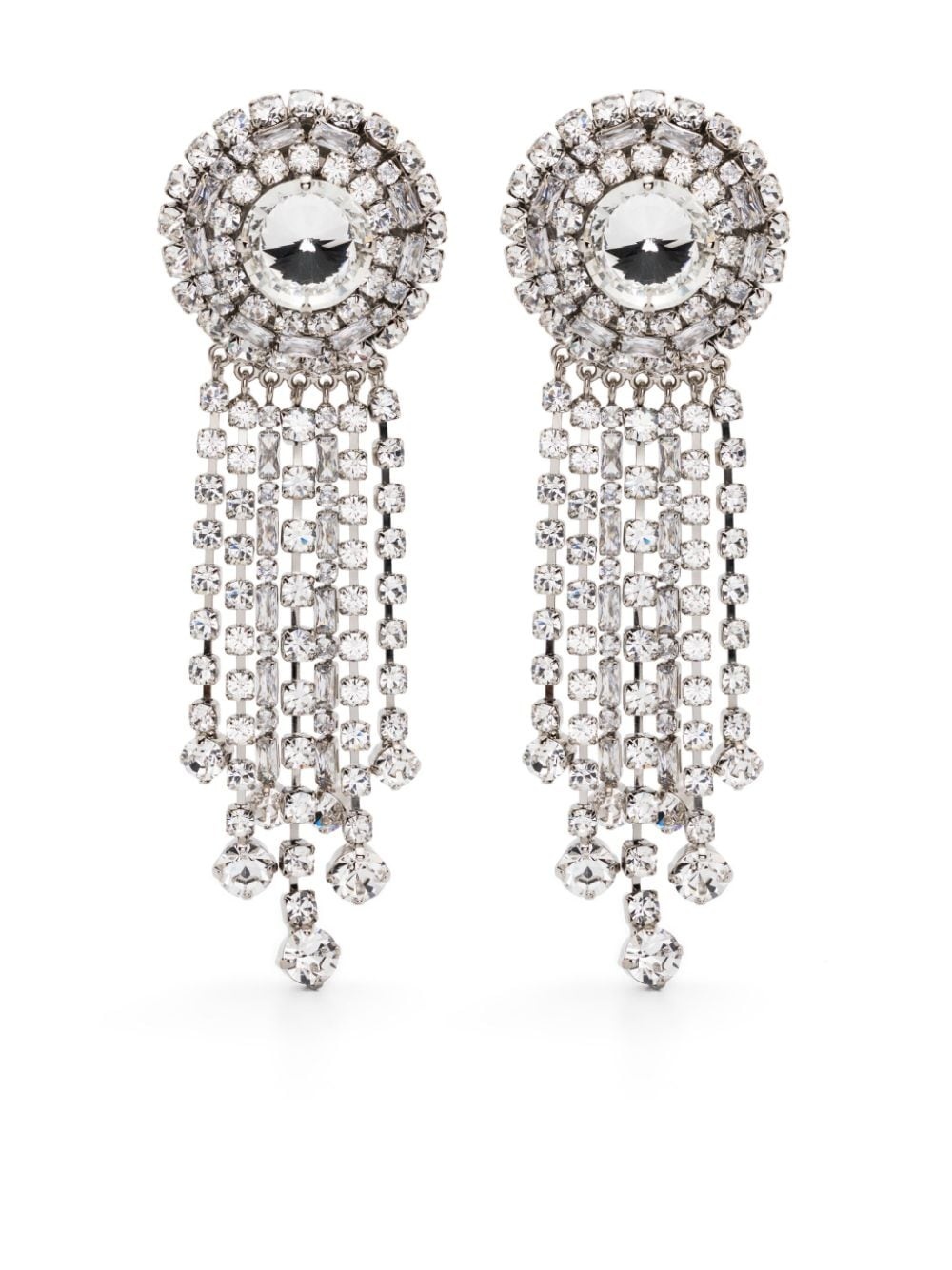 crystal-embellished dangle earrings Highlights - Silver-tone - Crystal embellishment - Dangle design - Clip-on design - These earrings come as a pair. Made in Italy SIZE & FIT Model measurements Height 5 ft 11 in(1.8 m) Bust/Chest 31.49 in(80 cm) Hips 36.22 in(92 cm) Waist 25.59 in(65 cm) Measurement HEIGHT 4.72 in(12 cm) Weight (single earring) 37 g(37 g) WIDTH 1.53 in(3.9 cm)