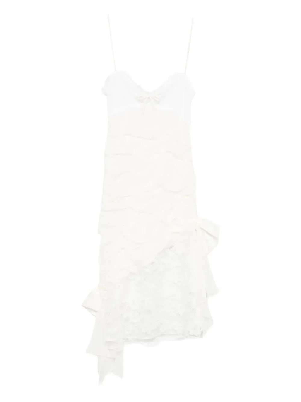 draped lace mini dress Highlights - White - Silk - Lace panel - Draped bodice - Bow detail - Ruffled detail - Made in italy Made in Italy Composition Outer: Silk 100%, Cotton 75%, Polyamide 25% Lining: Silk 100% Washing instructions Dry Clean Only