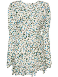 floral-print silk minidress This Alessandra Rich minidress is characterised by a playful outlook. It's cut in Italy from cream-white silk with a ruched body, low back and ruffled hem. The all-over rose print references the brand's romantic side. Highlights - Cream white, multicolour - Silk - All-over floral print - Round neck - Shoulder pads - Long sleeves - Cuff zips - Ruched detailing - Decorative button detailing - Draped detailing - Ruffle hem - Open back - Self-tie fastening - Full lining - Concealed side zip fastening Made in Italy Composition Lining: Cupro 100% Outer: Silk 100% SIZE & FIT Model measurements Height 5 ft 10 in(1.78 m) Bust/Chest 31.49 in(80 cm) Hips 37 in(94 cm) Waist 23.62 in(60 cm) Measurement SLEEVE LENGTH 21.25 in(54 cm) HIPS 31.49 in(80 cm) LENGTH 33.85 in(86 cm) WAIST 26.77 in(68 cm) BUST 28.74 in(73 cm) Shoulder Width 12.99 in(33 cm) FittingInformation Designed for a slim fit that sits just away from the body offering a close yet comfortable fit The internal shoulder pads offer a structured shape Made from a lightweight non-stretch fabric This piece fits true to size – take your usual size Washing instructions Dry Clean Only