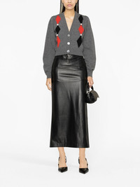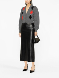 intarsia-knit floral-detail cardigan Cut to a contemporary cropped length, this cardigan from Alessandra Rich showcases the brand's signature bold aesthetic through argyle intarsia knit and romantic floral detailing to the front. Highlights - Dark grey - Multicolour - Wool - Patterned intarsia knit - Floral detail - Mother-of-pearl button fastening - V-neck - Long sleeves - Cropped Made in Italy Composition Wool 100%, Mother of Pearl 100% SIZE & FIT Model measurements Height 5 ft 10 in(1.77 m) Bust/Chest 32.67 in(83 cm) Hips 35.43 in(90 cm) Waist 23.62 in(60 cm) Measurement SLEEVE LENGTH 27.16 in(69 cm) LENGTH 18.11 in(46 cm) FittingInformation Designed for a slim fit that sits just away from the body offering a close yet comfortable fit The ribbed hem offers a close, comfortable fit Made with a midweight knit, this piece offers some stretch This piece fits true to size – take your usual size