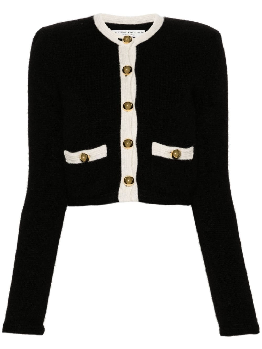 knitted cropped cardigan Highlights - Black/white - Alpaca wool-blend - Knitted construction - Brushed finish - Cropped - Front button fastening - Contrasting trim - Crew neck - Shoulder pads - Long sleeves - Ribbed cuffs and hem - Two front patch pockets - Straight hem Made in Italy Composition Alpaca Wool 55%, Polyamide 35%, Virgin Wool 10% SIZE & FIT Model measurements Height 5 ft 10 in(1.77 m) Bust/Chest 33.07 in(84 cm) Hips 34.64 in(88 cm) Waist 23.22 in(59 cm) FittingInformation Designed for a slim fit that sits just away from the body offering a close yet comfortable fit The internal shoulder pads offer a structured shape Made with a midweight knit, this piece offers some stretch