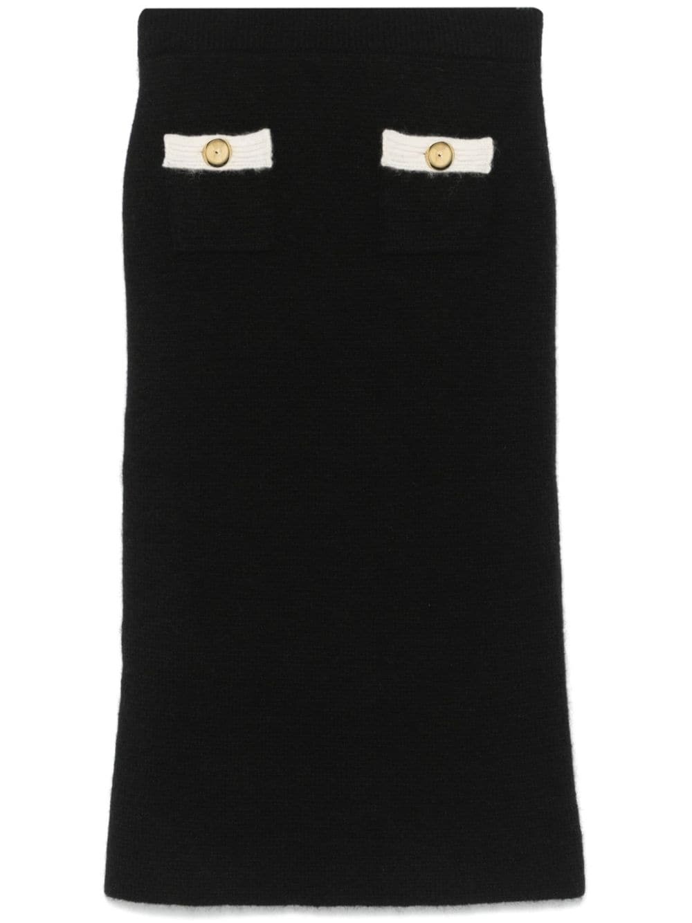 knitted midi skirt Highlights - Black - Alpaca wool-blend - Knitted construction - Ribbed waistband - Two side patch pockets - Straight hem - Mid-length Made in Italy Composition Alpaca Wool 55%, Polyamide 35%, Virgin Wool 10% SIZE & FIT Model measurements Height 5 ft 11 in(1.8 m) Bust/Chest 31.49 in(80 cm) Hips 36.61 in(93 cm) Waist 24.4 in(62 cm) Measurement LENGTH 27.55 in(70 cm) WAIST 24.4 in(62 cm) HIPS 29.13 in(74 cm) FittingInformation This midi-length skirt is intended to be worn high on the waist The elasticated waist allows for a comfortable fit Made with a midweight knit, this piece offers some stretch