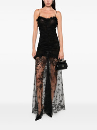 lace ruched dress Highlights - Black - Lace fabric - Spaghetti straps - Gathered bodice - Sheer overlay - Bow detail Made in Italy Composition Outer: Silk 100%, Cotton 55%, Polyamide 45% Lining: Silk 100% SIZE & FIT Model measurements Height 5 ft 10 in(1.78 m) Bust/Chest 33.46 in(85 cm) Hips 36.22 in(92 cm) Waist 23.22 in(59 cm) Washing instructions Dry Clean Only
