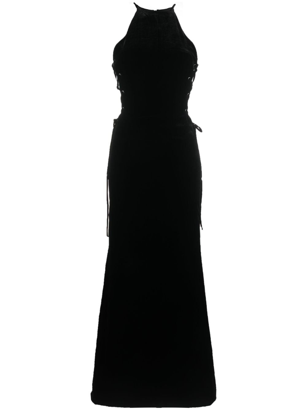 lattice lace-up gown This floor-length gown from Alessandra Rich is made in Italy, delicately detailed with lattice lace-up detailing at the side, merging a classic look with contemporary elements. Highlights - Black - Round neck - Lattice-strap detailing Made in Italy Composition Lining: Viscose 65%, Polyester 35% Outer: Viscose 80%, Spandex/Elastane 10%, Silk 10% SIZE & FIT Model measurements Height 5 ft 10 in(1.78 m) Bust/Chest 33.46 in(85 cm) Hips 36.22 in(92 cm) Waist 23.22 in(59 cm) Measurement CHEST 26.77 in(68 cm) HIPS 33.85 in(86 cm) LENGTH 62.59 in(159 cm) WAIST 25.98 in(66 cm) FittingInformation Designed for a close fit throughout The adjustable drawstring means that you can adjust this piece’s fit to suit your comfort and preference Made from a midweight stretch fabric, this piece offers elasticity and flexibility when worn This piece fits true to size – take your usual size