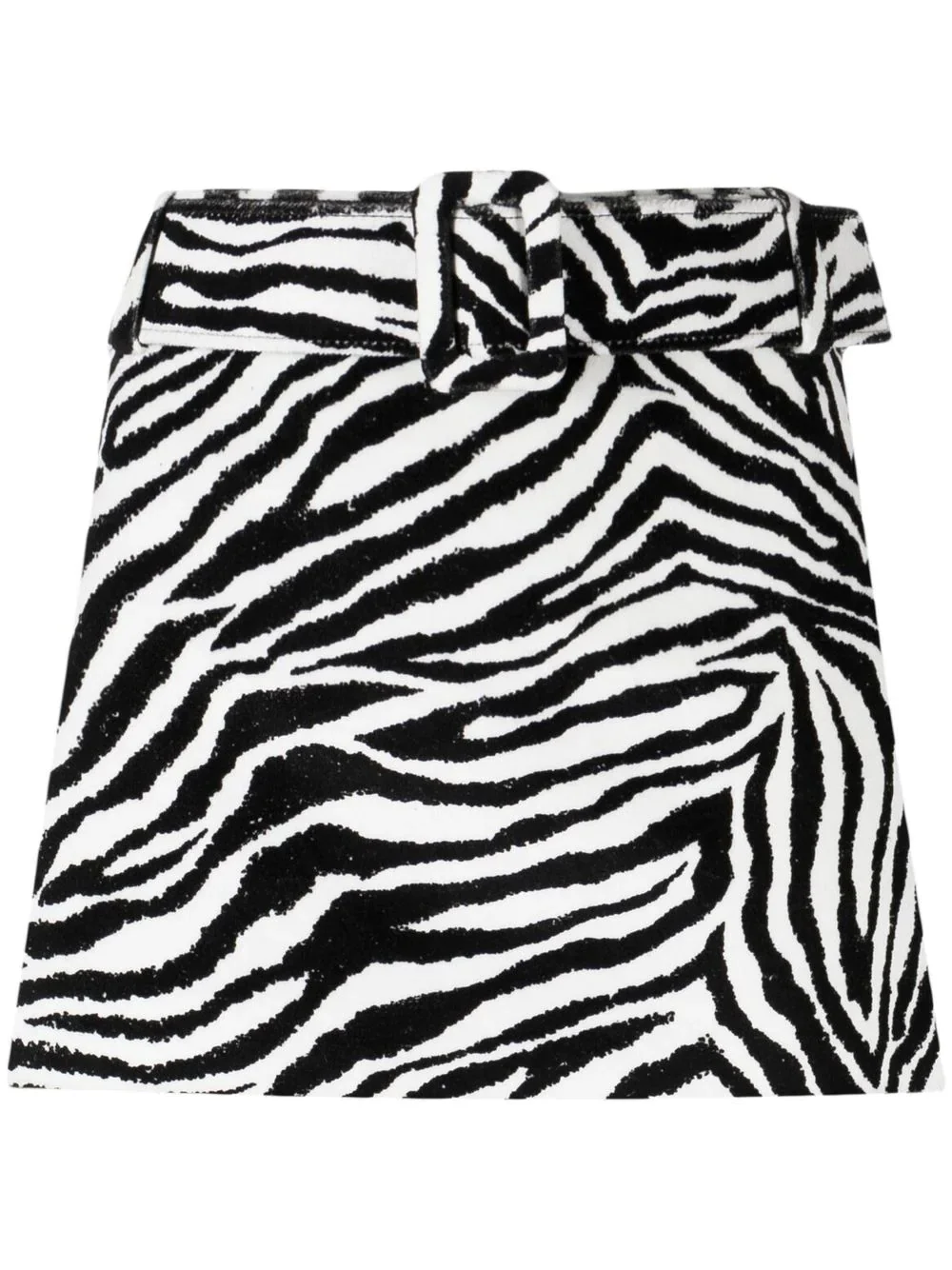 low-rise zebra-print skirt Alessandra Rich showcases their wild side in this low-rise skirt, evident in its bold zebra print design and streamlined fitted construction. Made in Italy Composition Lining: Viscose 100% Outer: Cotton 100% SIZE & FIT Model measurements Height 5 ft 10 in(1.77 m) Bust/Chest 32.67 in(83 cm) Hips 35.43 in(90 cm) Waist 23.62 in(60 cm) FittingInformation This piece fits true to size. We recommend you get your regular size Cut for a slim fit Made with a mid-weight non-stretch fabric Washing instructions Dry Clean Only