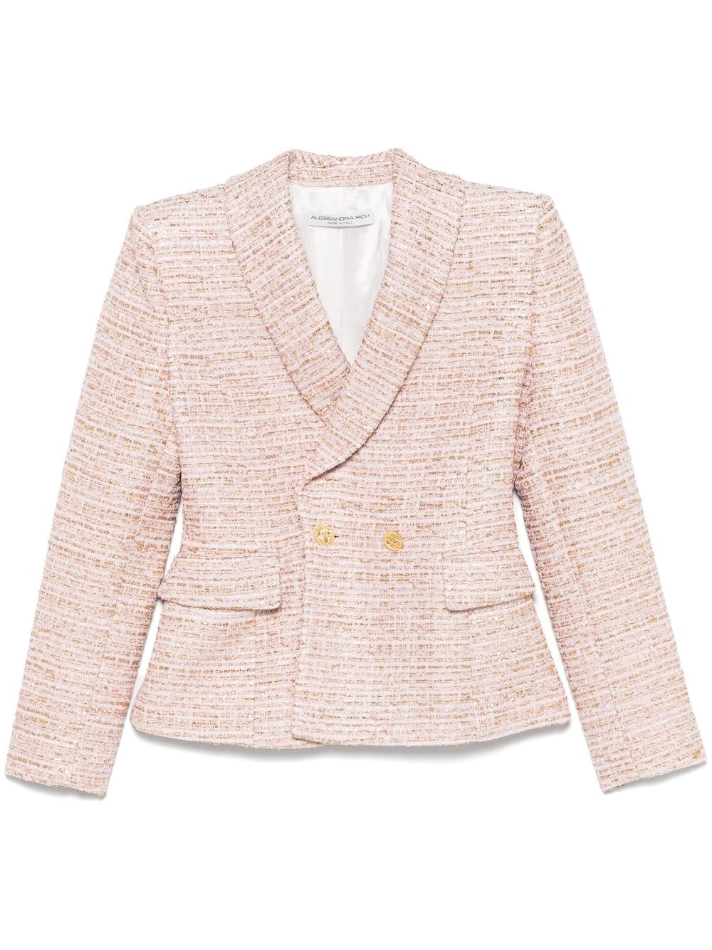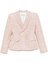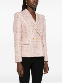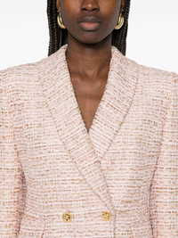 lurex tweed blazer Highlights - Light pink - Double-breasted button fastening - Buttoned-cuff sleeves - Two front flap pockets - Dart detailing Made in Italy Composition Lining: Viscose 100% Outer: Polyamide 69%, Metallized Polyester 12%, Virgin Wool 10%, Viscose 9% SIZE & FIT Model measurements Height 5 ft 11 in(1.8 m) Bust/Chest 32.67 in(83 cm) Hips 36.22 in(92 cm) Waist 24.4 in(62 cm) FittingInformation Designed for a slim fit that sits just away from the body offering a close yet comfortable fit The internal shoulder pads offer a structured shape Made from a midweight non-stretch fabric