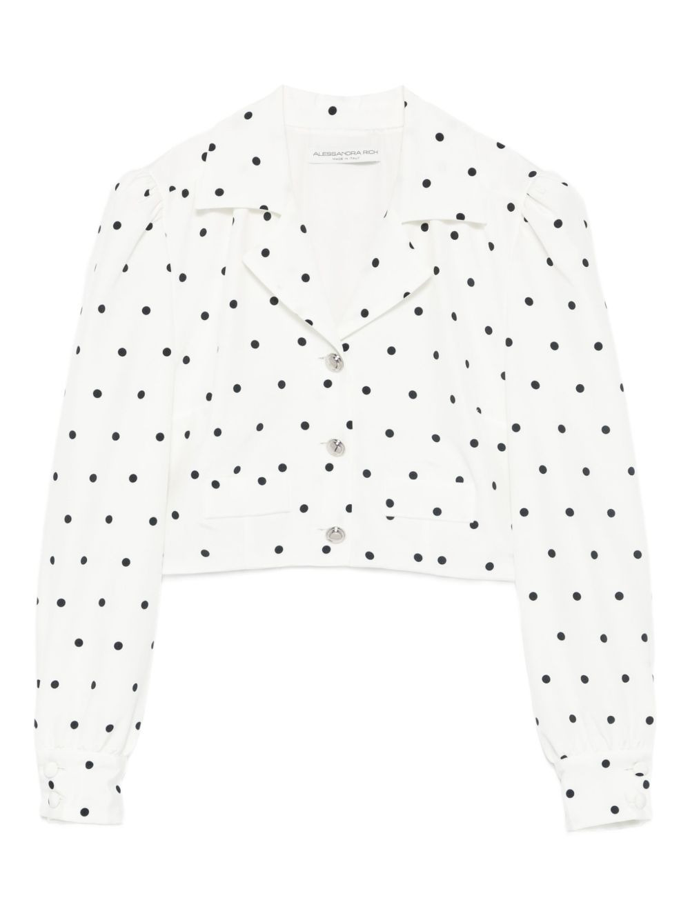 polka-dot buttoned jacket Highlights - White - Polka dot pattern - Button fastening - Long sleeves Made in Italy Composition Outer: Silk 100% Lining: Polyester 100% SIZE & FIT Model measurements Height 5 ft 10 in(1.78 m) Bust/Chest 31.49 in(80 cm) Hips 37 in(94 cm) Waist 23.62 in(60 cm) Washing instructions Dry Clean Only