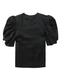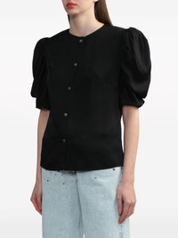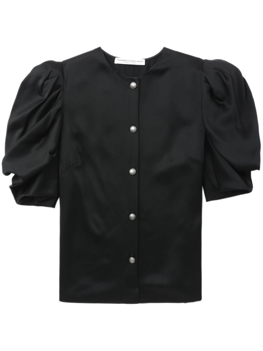 puff-sleeve collarless shirt Highlights - Black - Round neck - Front button fastening - Short puff sleeves - Straight hem Made in Italy Composition Acetate 60%, Viscose 40%