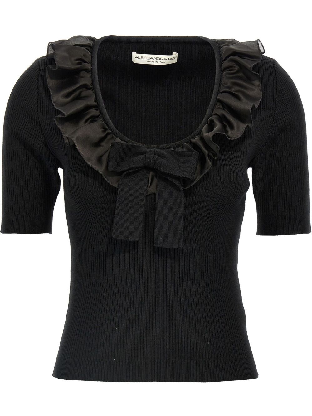 ruffled T-shirt Highlights - Black - Scoop neck - Short sleeves - Bow detailing Made in Italy Composition Wool 90%, Cashmere 10%