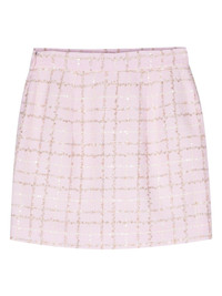 sequin-embellished tweed mini skirt Highlights - Blush pink - Tweed - Metallic threading - Sequin embellishment - Check pattern - Thigh-length - Straight hem - Full lining - Concealed side hook and zip fastening Made in Italy Composition Outer: Polyamide 80%, Polyester 12%, Viscose 6%, Metallic Fibre 2% Lining: Viscose 100%