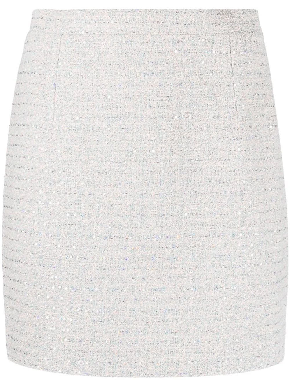 sequin-embellished tweed miniskirt Highlights - Light blue - Cotton blend - Tweed - Sequin embellishment - Concealed side zip fastening - Thigh-length Made in Italy Composition Outer: Cotton 72%, Polyester 18%, Polyamide 11% Lining: Viscose 100% SIZE & FIT Model measurements Height 5 ft 10 in(1.77 m) Bust/Chest 32.67 in(83 cm) Hips 35.43 in(90 cm) Waist 23.62 in(60 cm) FittingInformation This mini-length skirt is intended to be worn high on the waist Made from a midweight non-stretch fabric This piece fits true to size – take your usual size Measurement HIPS 30 in(76.2 cm) LENGTH 15 in(38.1 cm) WAIST 24.01 in(61 cm)