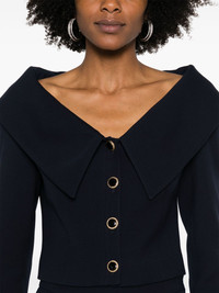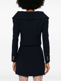 off-shoulder wool blazer Highlights - Navy blue - Virgin wool - Off-shoulder - Oversized pointed collar - Long sleeves - Buttoned cuffs - Full lining - Straight hem - Front button fastening Made in Italy Composition Lining: Viscose 100% Outer: Virgin Wool 100% SIZE & FIT Model measurements Height 5 ft 11 in(1.8 m) Bust/Chest 32.67 in(83 cm) Hips 35.82 in(91 cm) Waist 25.98 in(66 cm) FittingInformation Designed for a slim fit that sits just away from the body offering a close yet comfortable fit Made from a midweight non-stretch fabric This piece fits true to size – take your usual size