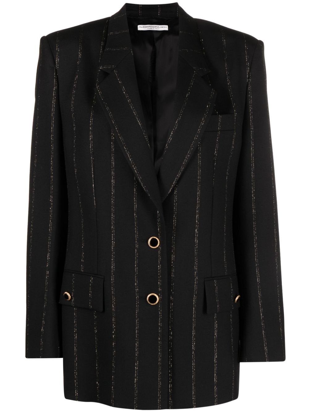 striped single-breasted blazer Highlights - Black/grey - Virgin wool blend - Vertical stripe pattern - Gold-tone buttons - Notched lapels - Front button fastening - Long sleeves - Buttoned cuffs - Two front flap pockets - Straight hem Made in Italy Composition Outer: Virgin Wool 94%, Polyester 6% Lining: Viscose 100% SIZE & FIT FittingInformation Designed for a relaxed fit, this piece allows for comfort and movement when worn The internal shoulder pads offer a structured shape Made from a midweight non-stretch fabric This piece fits true to size – take your usual size Washing instructions Dry Clean Only