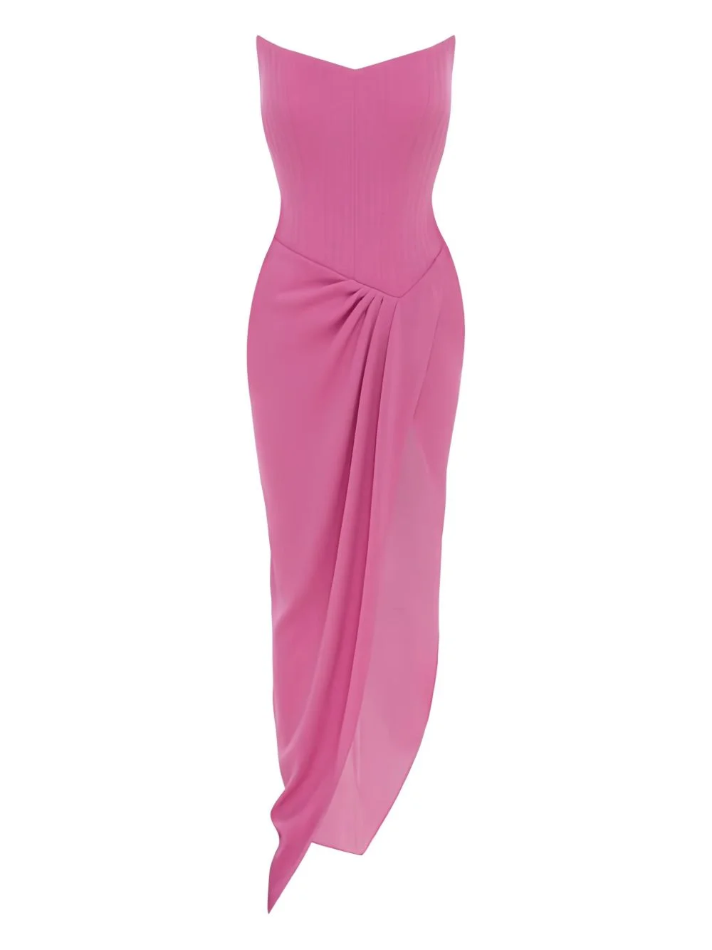 asymmetrical drape maxi dress Highlights - Pink - Strapless - Sweetheart neck - Boned bodice - Front slit - Rear zip fastening Imported Composition Triacetate 84%, Polyester 16% Washing instructions Dry Clean Only