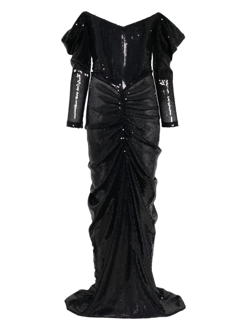off-shoulder draped midi dress
