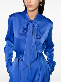 pussy bow-collar satin blouse Highlights - Royal blue - Satin finish - Pussy-bow collar - Long sleeves - Buttoned cuffs - Concealed front fastening - Curved hem Imported Composition Triacetate 82%, Polyester 18% SIZE & FIT Model measurements Height 5 ft 10 in(1.78 m) Bust/Chest 33.07 in(84 cm) Hips 35.82 in(91 cm) Waist 25.98 in(66 cm) FittingInformation Designed to be unstructured, offering a loose fit throughout The tie fastening gives an adaptable and personalised fit Made from a midweight non-stretch fabric This piece fits true to size – take your usual size