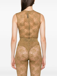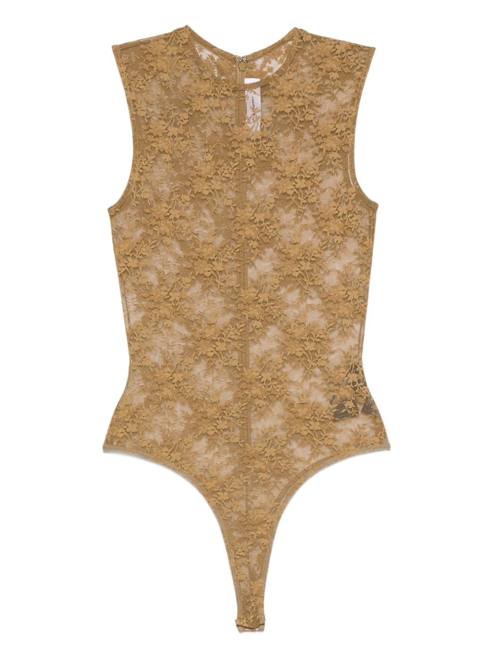 sleeveless lace bodysuit Highlights - Khaki - Lace - Sleeveless - High neck - Just a reminder that this piece must be tried on over your own garments. Imported Composition Polyamide 90%, Spandex/Elastane 10% SIZE & FIT Model measurements Height 5 ft 10 in(1.78 m) Bust/Chest 33.85 in(86 cm) Hips 36.61 in(93 cm) Waist 26.77 in(68 cm) Washing instructions Dry Clean Only