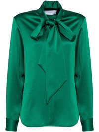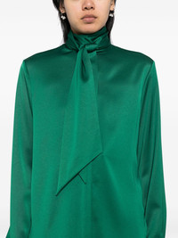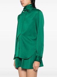 tie shirt Highlights - Emerald green - Front button fastening - Self-tie fastening - Buttoned cuffs - Curved hem Imported Composition Polyester 100% SIZE & FIT Model measurements Height 5 ft 10 in(1.77 m) Bust/Chest 31.49 in(80 cm) Hips 35.43 in(90 cm) Waist 25.19 in(64 cm) FittingInformation Designed to be unstructured, offering a loose fit throughout Made from a midweight non-stretch fabric, this piece offers minimal elasticity when worn