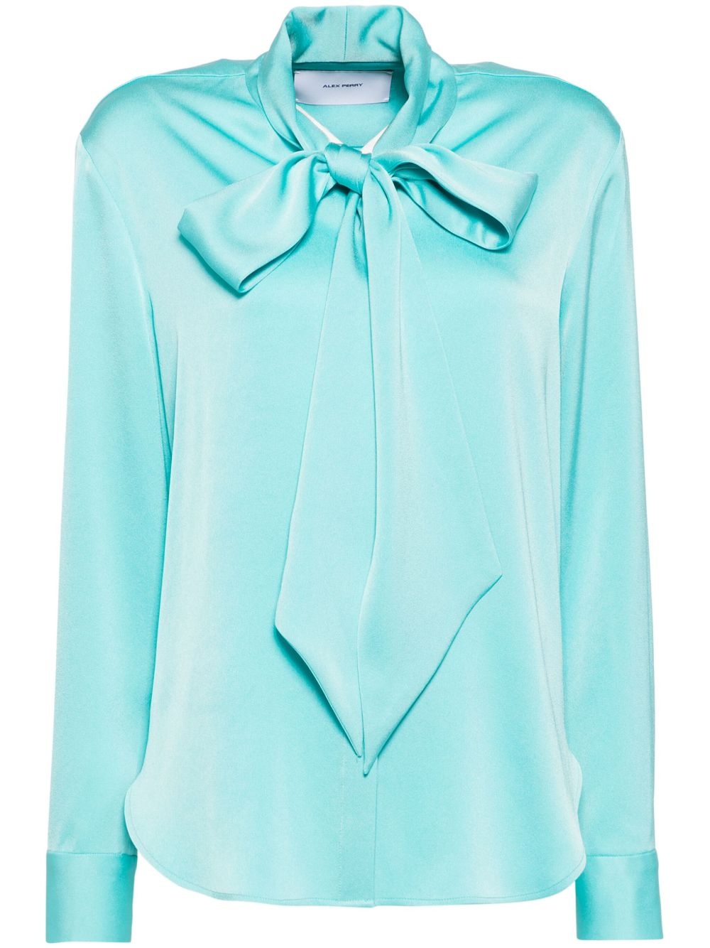 tie shirt Highlights - Tiffany blue - Front button fastening - Self-tie fastening - Buttoned cuffs - Curved hem Imported Composition Polyester 100% SIZE & FIT Model measurements Height 5 ft 10 in(1.77 m) Bust/Chest 31.49 in(80 cm) Hips 35.43 in(90 cm) Waist 25.19 in(64 cm) FittingInformation Designed to be unstructured, offering a loose fit throughout Made from a midweight non-stretch fabric, this piece offers minimal elasticity when worn