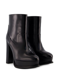 120mm ankle boots Highlights - Jet black - Calf leather - Ankle-length - Almond toe - Platform sole - High block heel - Pull-on style Made in Italy Composition Sole: Calf Leather 100% Lining: Calf Leather 100% Outer: Calf Leather 100% SIZE & FIT Measurement HEEL 4.72 in(12 cm)