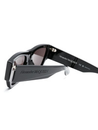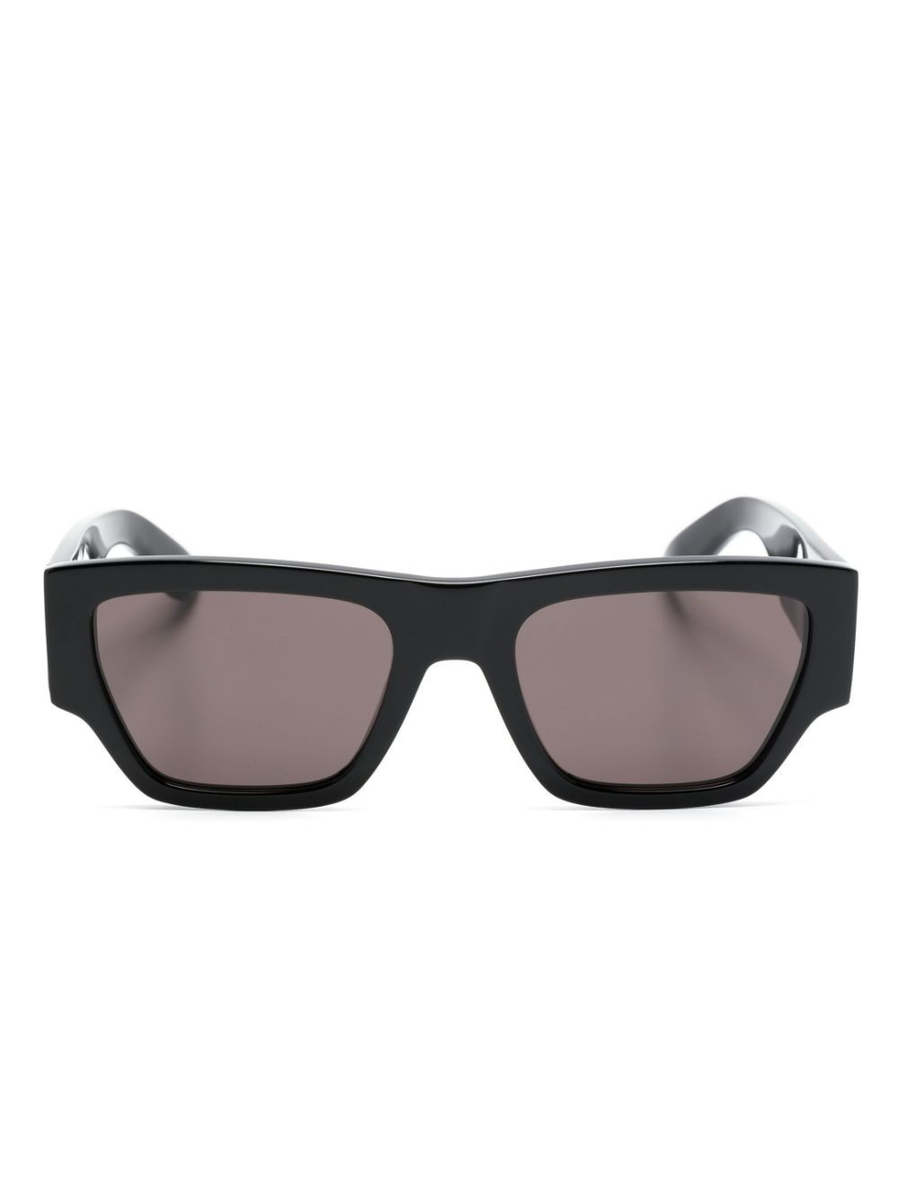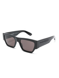 Angled rectangle-frame sunglasses Contemporary and angular lines permeate Alexander McQueen Eyewear's AW22 edit, as shown by these black sunglasses. Made in Italy, they boast a timeless rectangle frame whilst benefiting from grey-tinted UV-protective lenses. Highlights - Black - Rectangle frame - Grey tinted lenses - Engraved logo - Curved arms - These glasses come with a protective case. Made in Italy Composition Acetate 100% SIZE & FIT Measurement Arm Length 5.7 in(14.5 cm) Bridge Width 0.78 in(2 cm) Lens Diameter 2.16 in(5.5 cm) Total Width 5.7 in(14.5 cm)