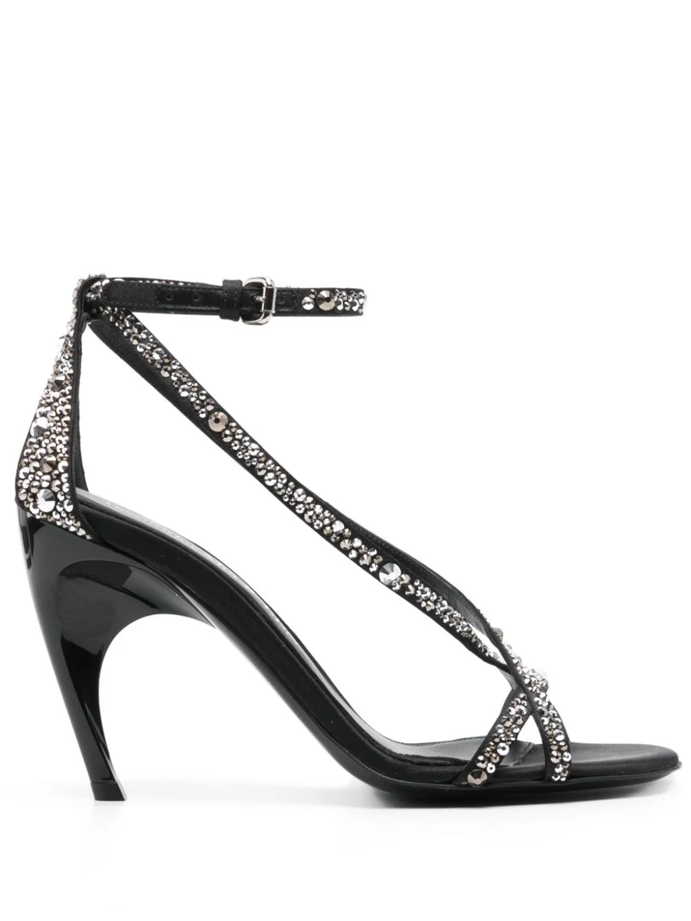 95mm Armadillo sandals Highlights - Black - Calf leather - Crystal embellishment - Buckle-fastening ankle strap - 95mm - High stiletto heel - Twisted straps - Round open toe - Branded insole Made in Italy Composition Silk 100% SIZE & FIT Measurement HEEL 4.13 in(10.5 cm) Sole height 0.39 in(1 cm)