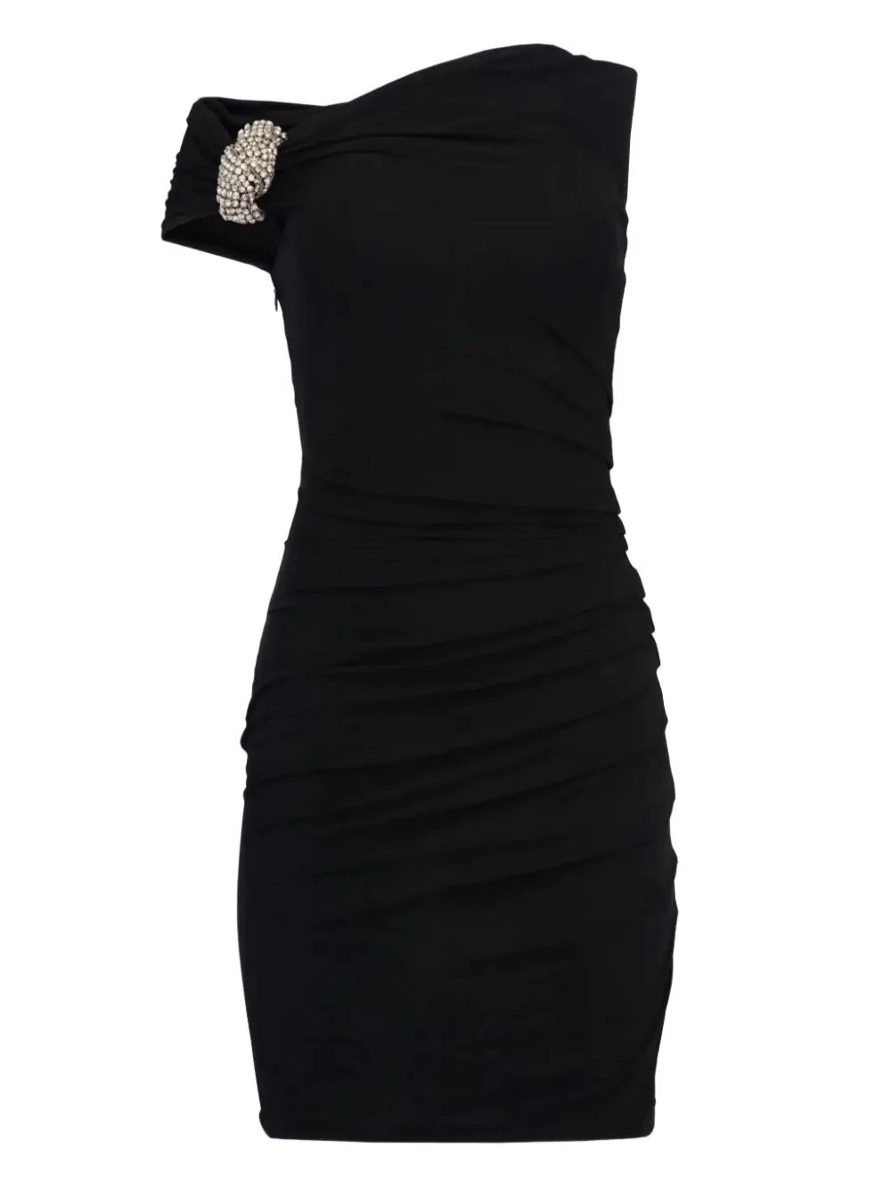 crystal-knot asymmetric minidress Highlights - Black - Stretch-jersey - Crystal embellishment - Knot detailing - Asymmetric neck - Off-shoulder - Single short sleeve - Ruched bodice - Straight hem - Thigh-length Made in Italy Composition Lining: Polyamide 75%, Elastane 25% Outer: Viscose 100% SIZE & FIT FittingInformation Designed for a close fit throughout Made from a midweight stretch fabric, this piece offers elasticity and flexibility when worn This piece fits true to size – take your usual size Washing instructions Dry Clean Only